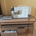 Le plateau intermédiaire est conçu pour accueillir votre machine à coudre ou votre surjeteuse (sortie 68cm). Une fois en place, ce plateau est soutenu par un « pied couture ». Cela garantie la stabilité et permet d’éviter les vibrations lors de l’utilisation de la machine.